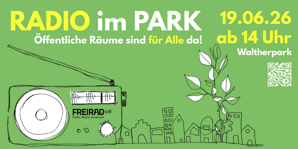 Radio im Park, am Freitag, den 19. Juni von 14 bis 22 Uhr im Waltherpark. Lasst uns gemeinsam den öffentlichen Raum einnehmen und in einem von Konsumzwang befreitem Umfeld unter grünem Dach einen Tag voll diversem Programm feiern! Die perfekte Gelegenheit Radiomacher*innen kennenzulernen, sich auszutauschen und gemeinsam einen Tag im Grünen zu verbringen.