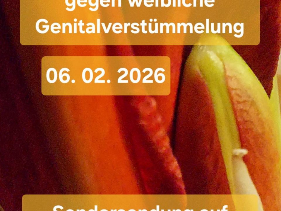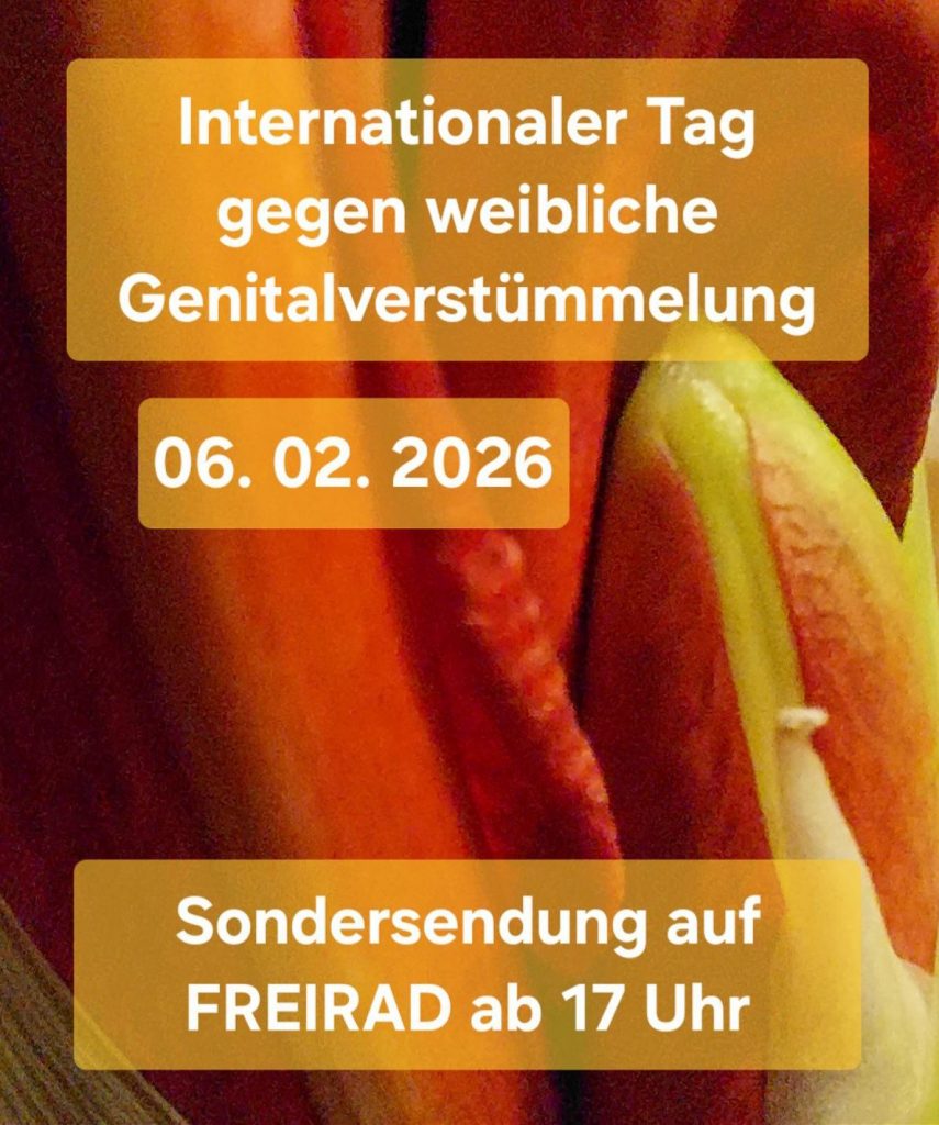 Jährlich am 06. Februar findet der Internationale Tag gegen weibliche Genitalverstümmelung und -beschneidung (FGM/C) statt. Zu diesem Anlass begrüßt Ava Minatti ("Sex up your life!") Tatiana Olaya Montoya von der FGM/C Koordinations- und Beratungsstelle des Österreichischen Roten Kreuzes und ihre Arbeitskollegin Roda Aden, sowie Sarah Bestle von RMSA – Refugee Midwifery Service Austria und ihre Hebammenkollegin Hamda Haylir zu einem Interview im Studio. Ab 17 Uhr.