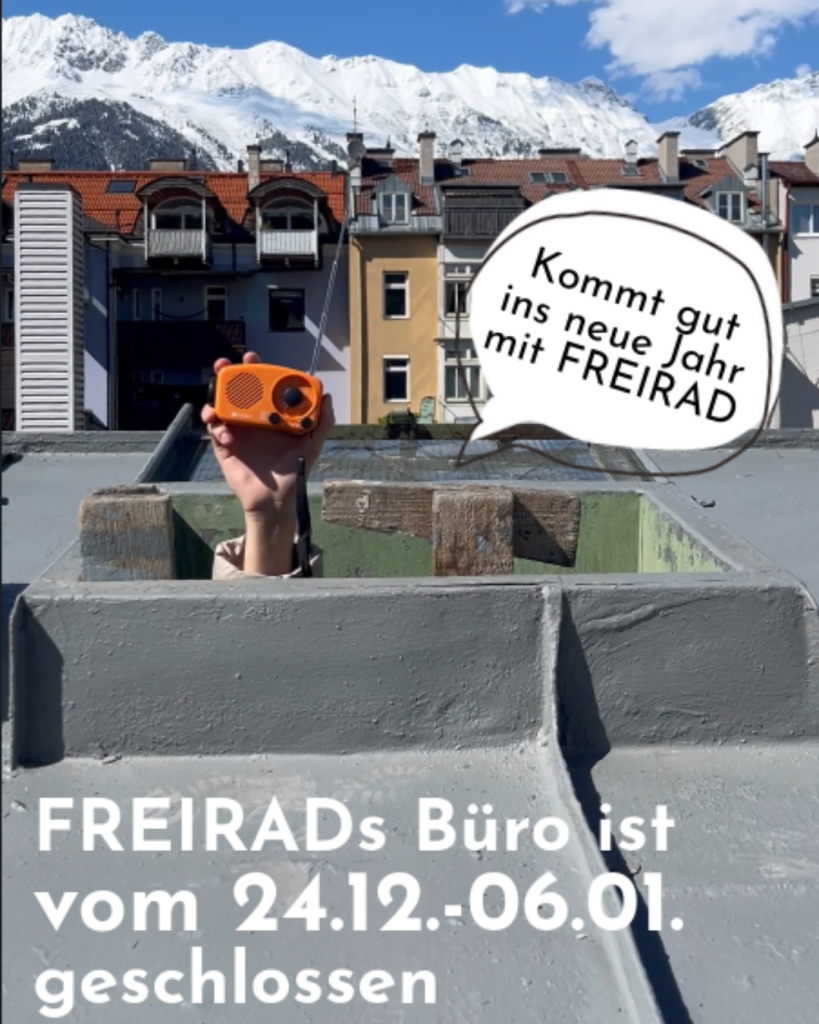 FREIRADs Büro ist zwischen dem 24.12. bis 06.01. für Parteinverkehr geschlossen. Kommt gut ins neue Jahr, am Besten mit FREIRAD auf den Ohren.